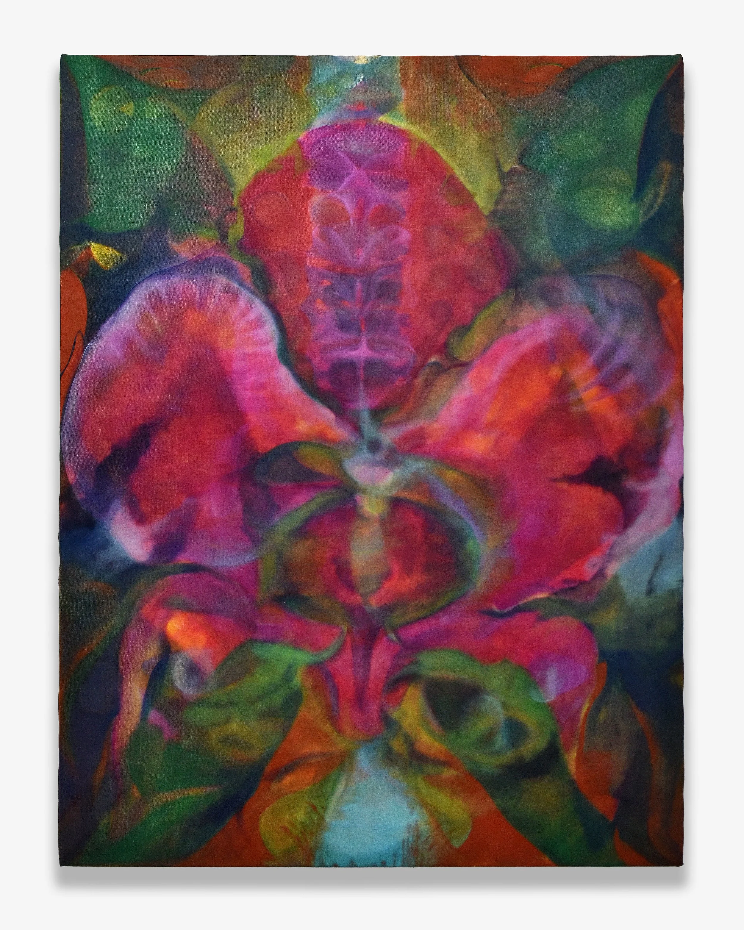 This show brings together four artists working across painting, sculpture and textile to ply the edges of form with an ecstatic gaze. Hook, Eye, Mouth presents work that boomerangs through the surface tension of reference, craft and material inquiry. Though their studio practices encompass a vast arena of formal pursuits, the work shares a vibrational quality, distinctly alive and in movement.