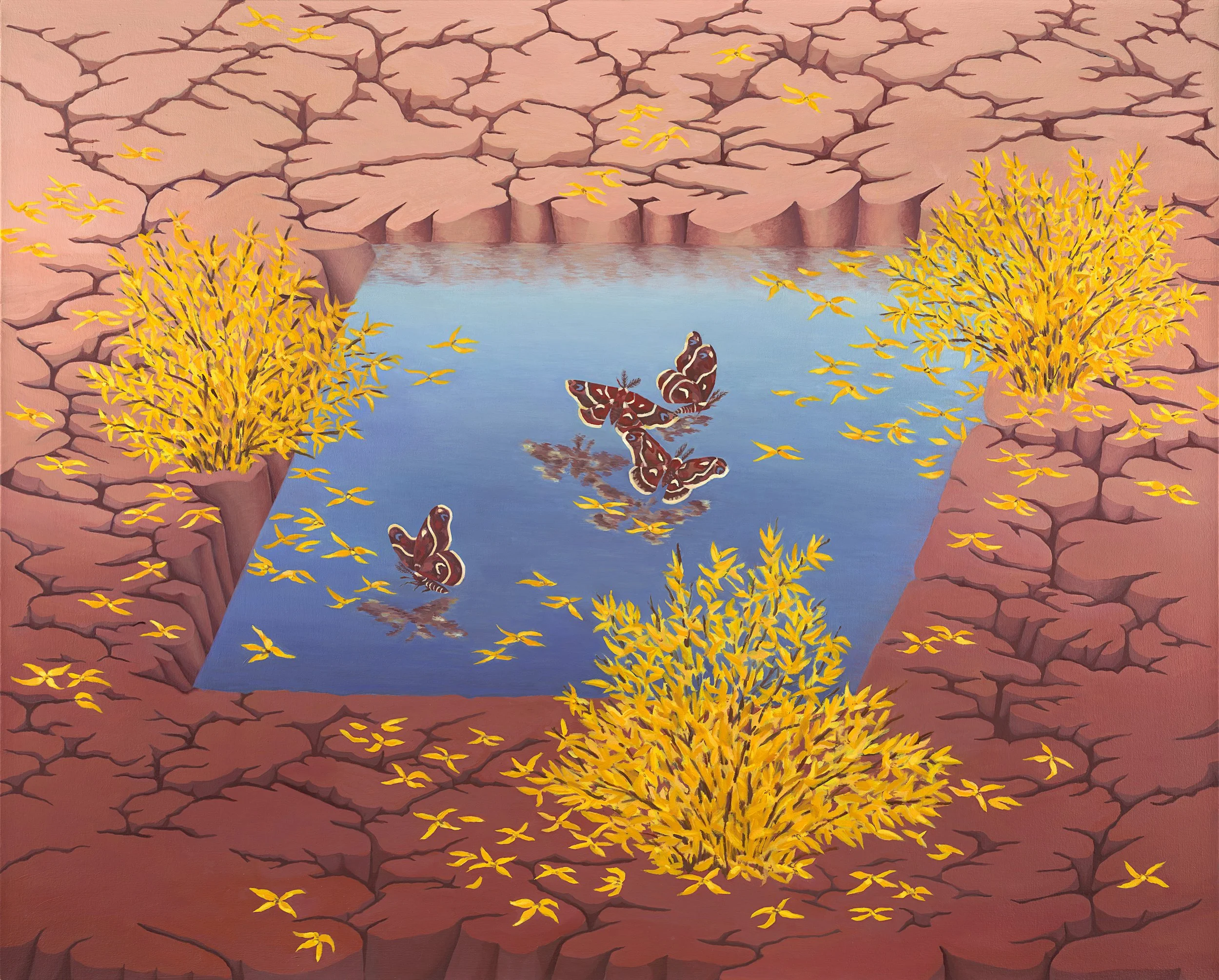 New York-based artist, Lenna Christakis’s oil paintings play within the constant slippage of the real. The Real Thing is a graphic, technicolor landscape of modernity’s simulacrum. The artist is interested in the larger questions of depiction in this body of work—as it applies to painting and visual culture on the whole.